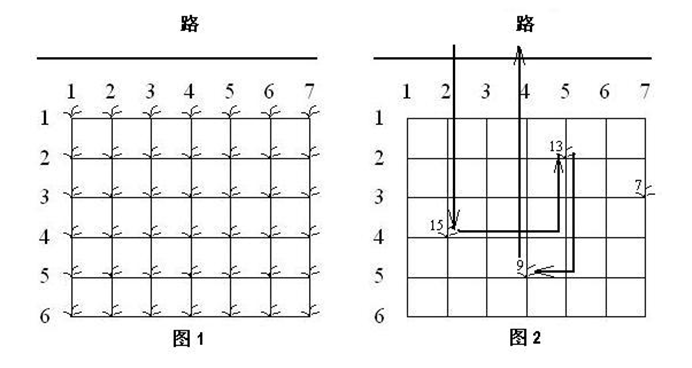 鲁宾逊先生和多多都很开心,因为花生正是他们的最爱。在告示牌背后,路边真的有一块花生田,花生植株整齐地排列成矩形网格(如图1)。有经验的多多一眼就能看出,每棵花生植株下的花生有多少。为了训练多多的算术,鲁宾逊先生说:“你先找出花生最多的植株,去采摘它的花生;然后再找出剩下的植株里花生最多的,去采摘它的花生;依此类推,不过你一定要在我限定的时间内回到路边。”
