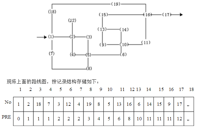 从入口(1)到出口(17)的可行路线图中,数字标号表示关卡: