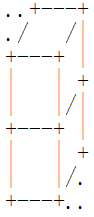 小渊有一块面积为m*n的矩形区域,上面有m*n个边长为1的格子,每个格子上堆了一些同样大小的积木(积木的长宽高都是1),小渊想请你打印出这些格子的立体图。我们定义每个积木为如下格式,并且不会做任何翻转旋转,只会严格以这一种形式摆放: