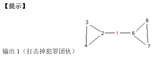 某个地区有n(n<=1000)个犯罪团伙,当地警方按照他们的危险程度由高到低给他们编号为1-n,他们有些团伙之间有直接联系,但是任意两个团伙都可以通过直接或间接的方式联系,这样这里就形成了一个庞大的犯罪集团,犯罪集团的危险程度由集团内的犯罪团伙数量唯一确定,而与单个犯罪团伙的危险程度无关(该犯罪集团的危险程度为n)。现在当地警方希望花尽量少的时间(即打击掉尽量少的团伙),使得庞大的犯罪集团分离成若干个较小的集团,并且他们中最大的一个的危险程度不超过n/2。为达到最好的效果,他们将按顺序打击掉编号1到k的犯罪团伙,请编程求出k的最小值。