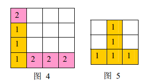 b) 当出现行和列都满足消除条件且行列共享某个方块时,行和列上满足消除条件的所有方块会被同时消除(例如下面图5 所示的情形,5 个方块会同时被消除)。