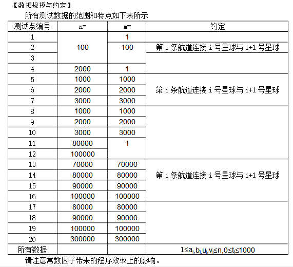 第一行包括两个正整数 n、m,表示 L 国中星球的数量及小 P 公司预接的运输计划的数量,星球从 1 到 n 编号。