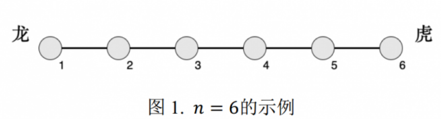 下面图 2 为 n = 6,m = 4 的示例,其中红色为龙方,黄色为虎方: