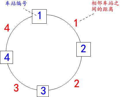 下图表示为有4个公交站,每一对相邻公交站之间的距离分别为1、2、3、4: