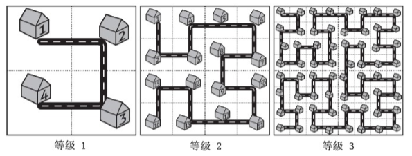 对于任意等级的城市,我们把正方形街区从左上角开始按照道路标号。